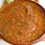 In a blender, pulse the diced tomatoes, charred veggies and spices until it forms a nice chunky texture.